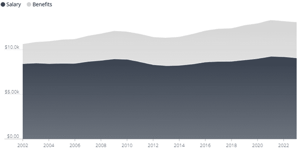 Figure 2: Inflation-Adjusted Spending Per Student on Employee Benefits and Salaries (2002-2023)